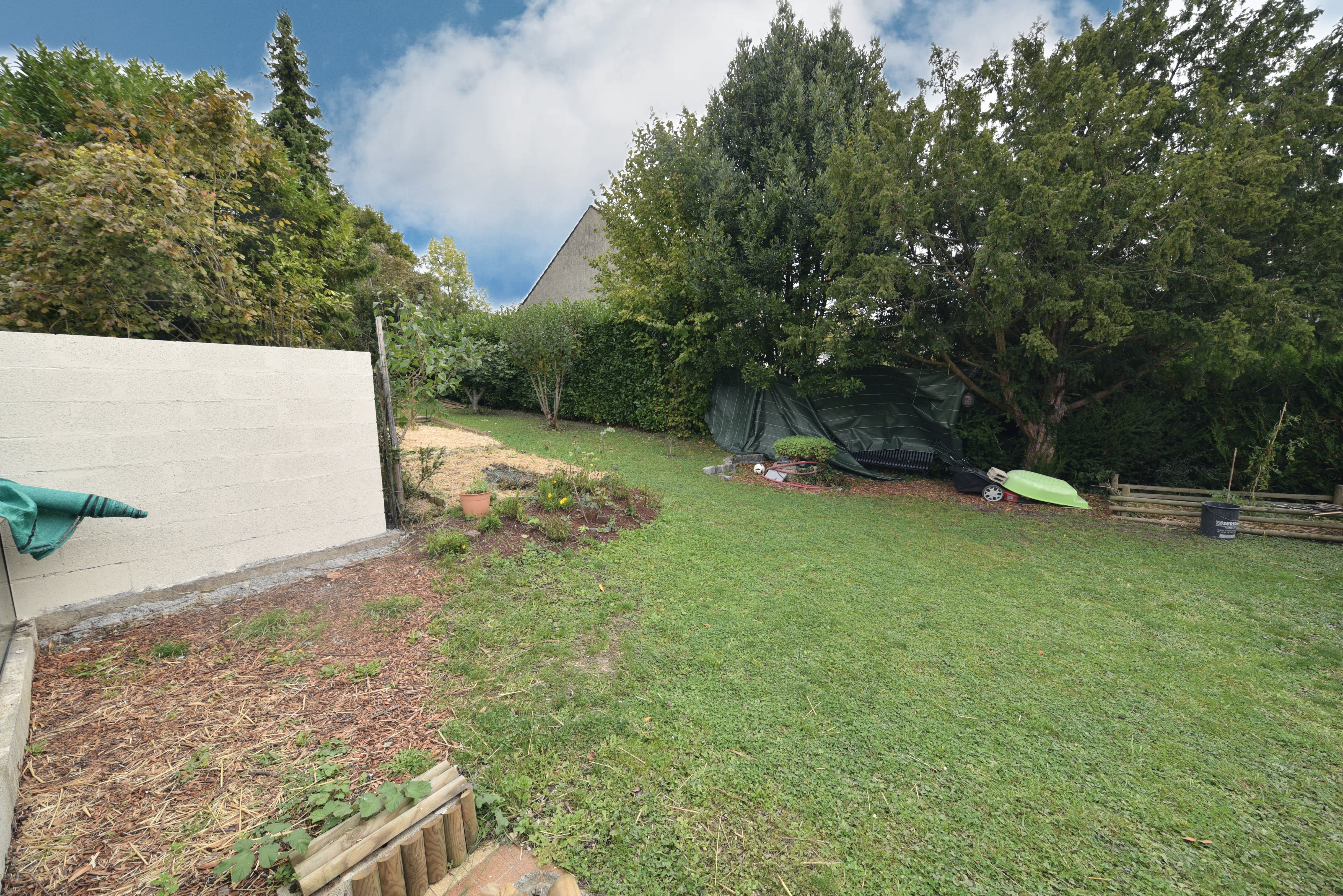 Coté extérieur, jolie jardin à l'abri des regards avec cabane de jardin.
